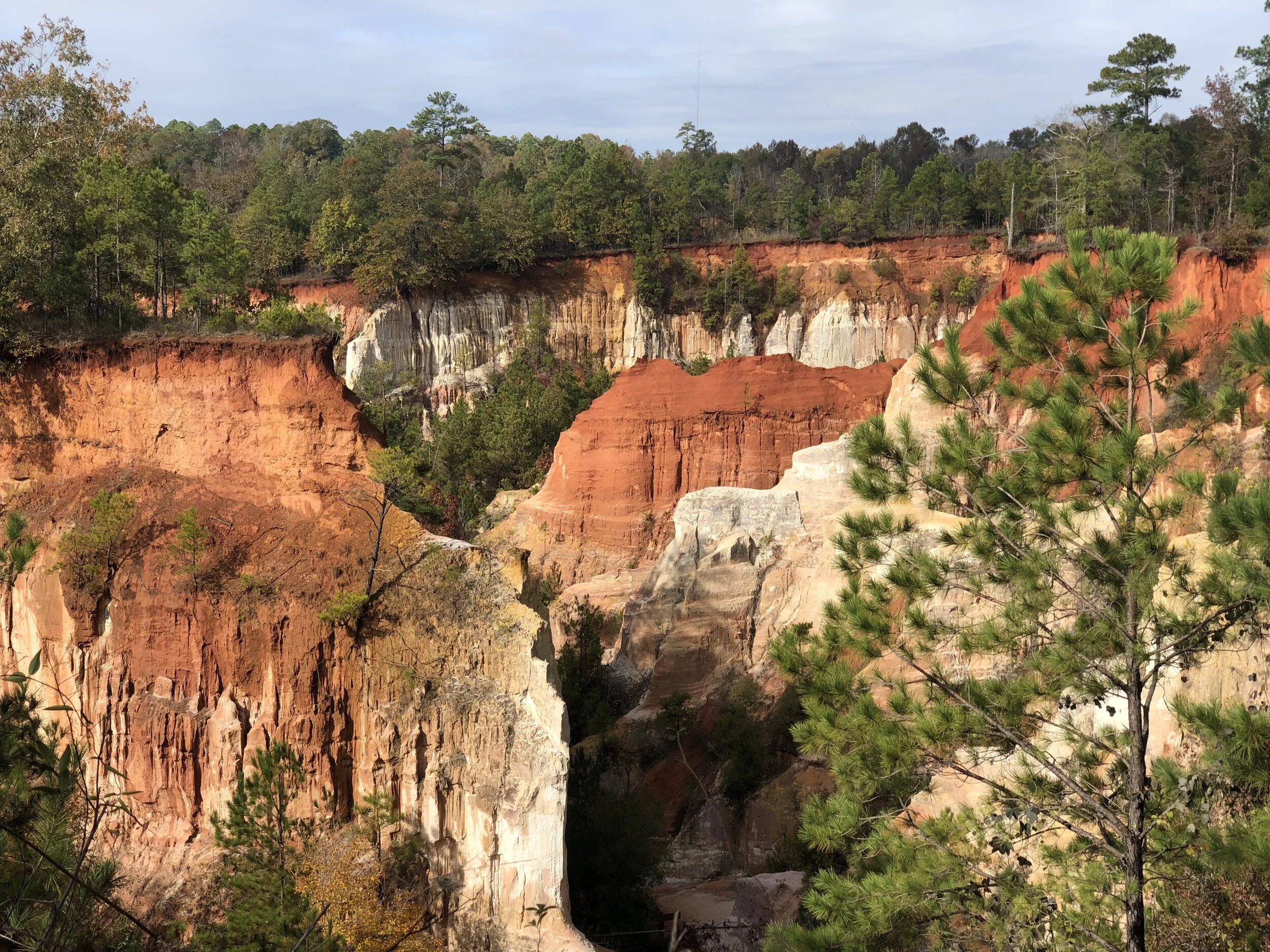 So naturally, it was quite the honor to be a Yankee teaching people south of the Mason-Dixon line about the beauty that's in their own backyards…no planes necessary – not even a full tank of gas necessary for a lot of these southern gents and belles. I met quite a few folks who hadn't heard of the place pictured above, while I was on my "Quick South Trip" – labeled "quick" because it was initially supposed to be a very last-minute, tiny, two-state less-than-a-week-long adventure, but then it ultimately evolved into a 10-day, 2,000-mile road trip through six Southern states. What can I say, sometimes I just can't help myself. But every time I met someone who said they hadn't heard of Providence Canyon State Park, I whipped out my handheld internet and showed them immediately, with the enthusiasm of a knife salesman all jazzed up to unload an awesome new batch onto some new prospects.